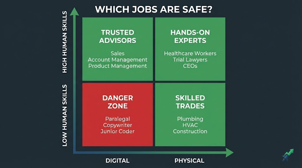 The first harbor is The Physical. Robots are coming, but they are much further behind. They cannot snake a drain, troubleshoot a messy HVAC system in a 100-year-old house, or handle the chaotic, unstructured environment of an emergency room. Dexterity is the new currency. If you can manipulate the physical world with your hands, your value is about to go up because you cannot be copy-pasted.